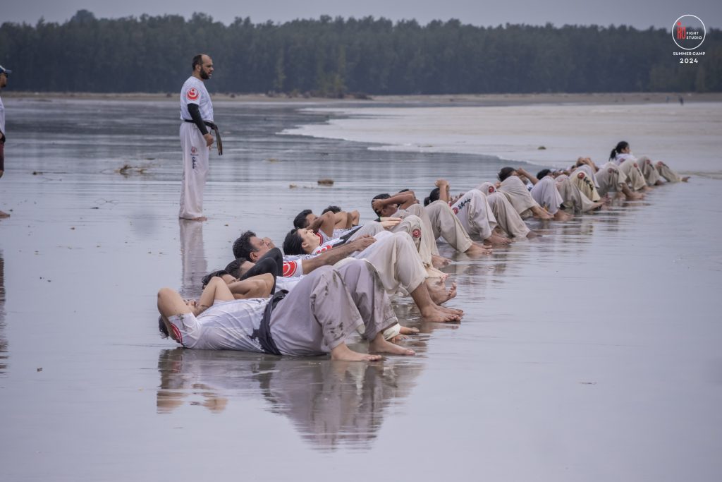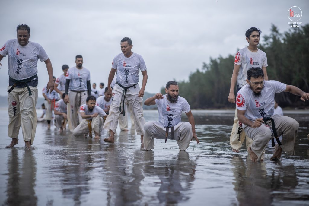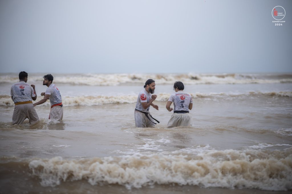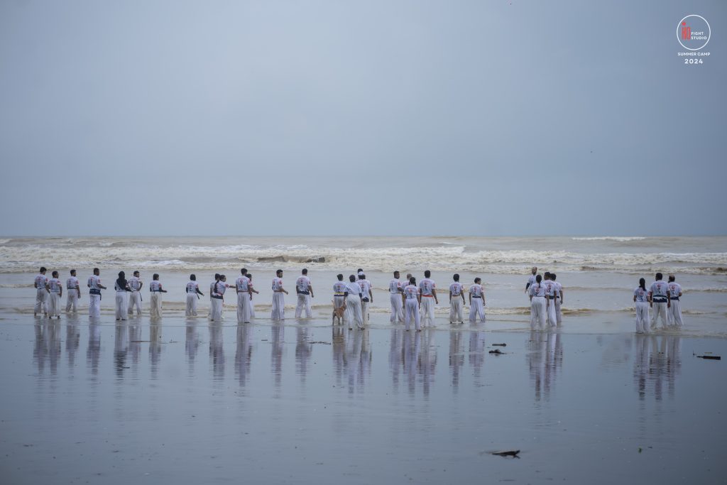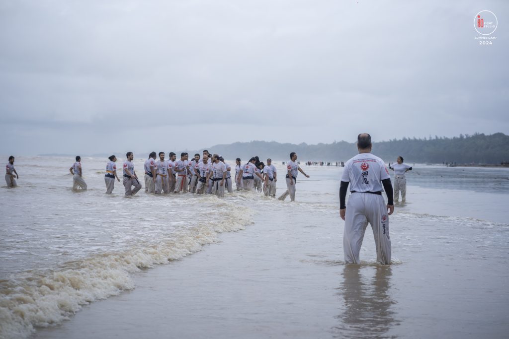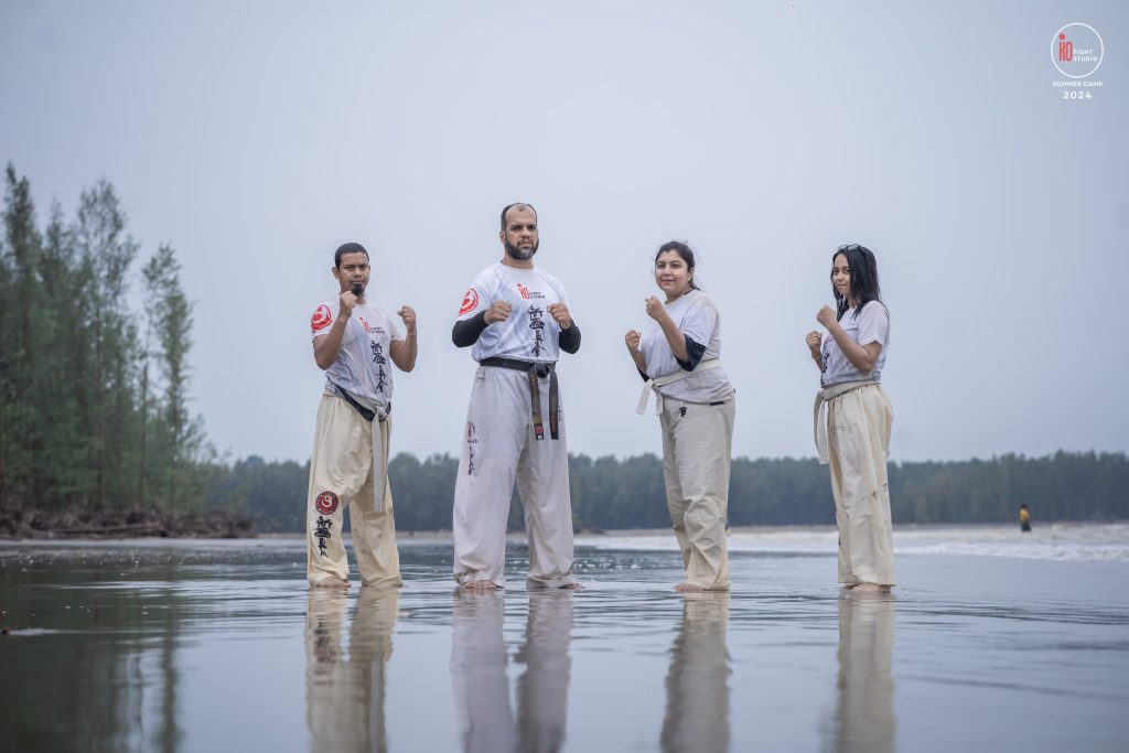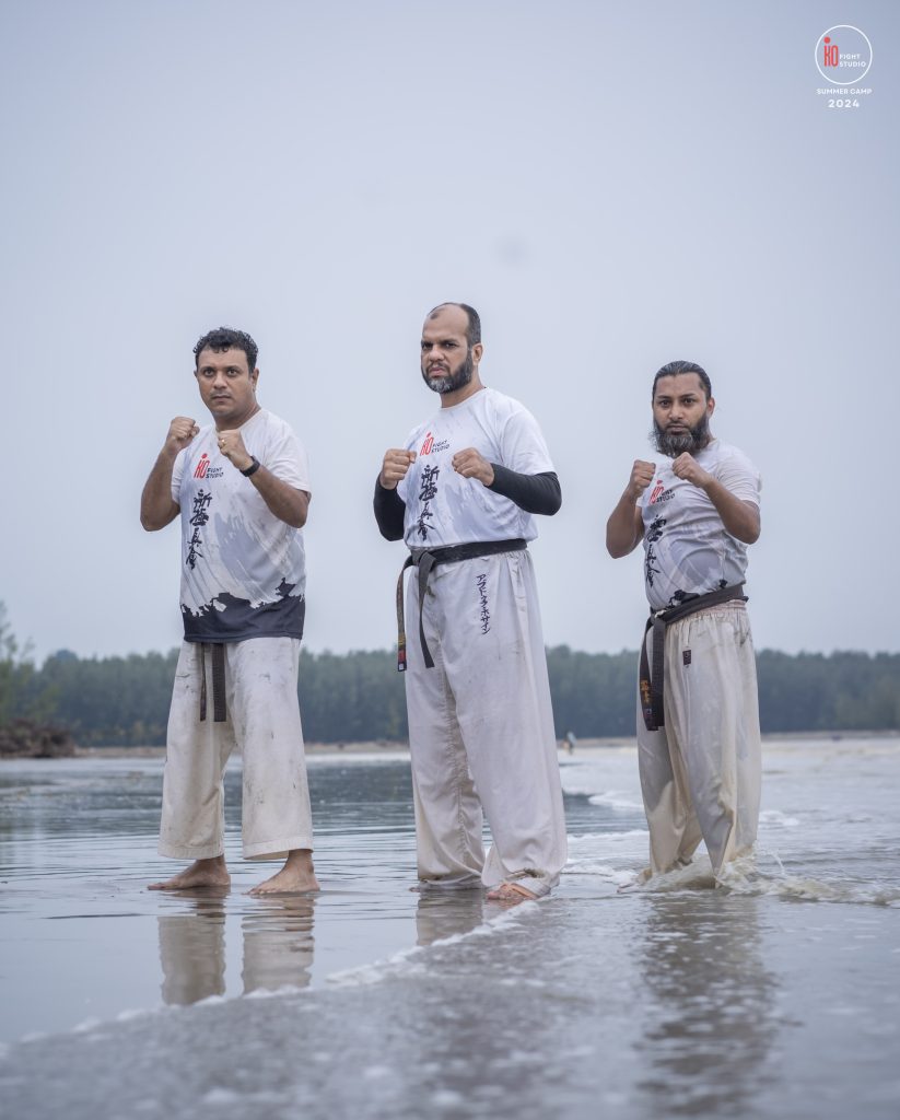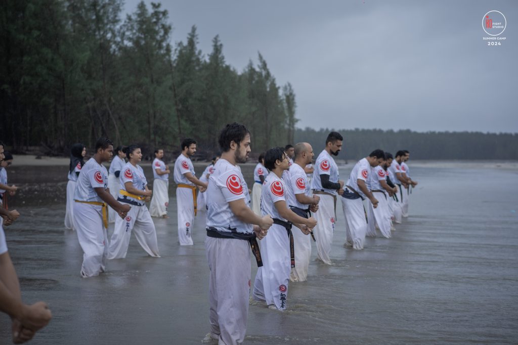 The camp’s training curriculum was structured to meet international standards, focusing on the core disciplines of Kyokushin: Kihon (basics), Eido (movement), Kata (forms), and Kumite (sparring). Each day began with dawn Zen meditation, followed by a 5 km run and high-intensity beach training. Morning kata sessions took place from 10:00 a.m. to 12:00 p.m., followed by afternoon beach conditioning starting at 3:00 p.m., after a 2 km walk, and ending at sunset with powerful group sessions.