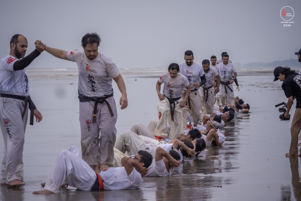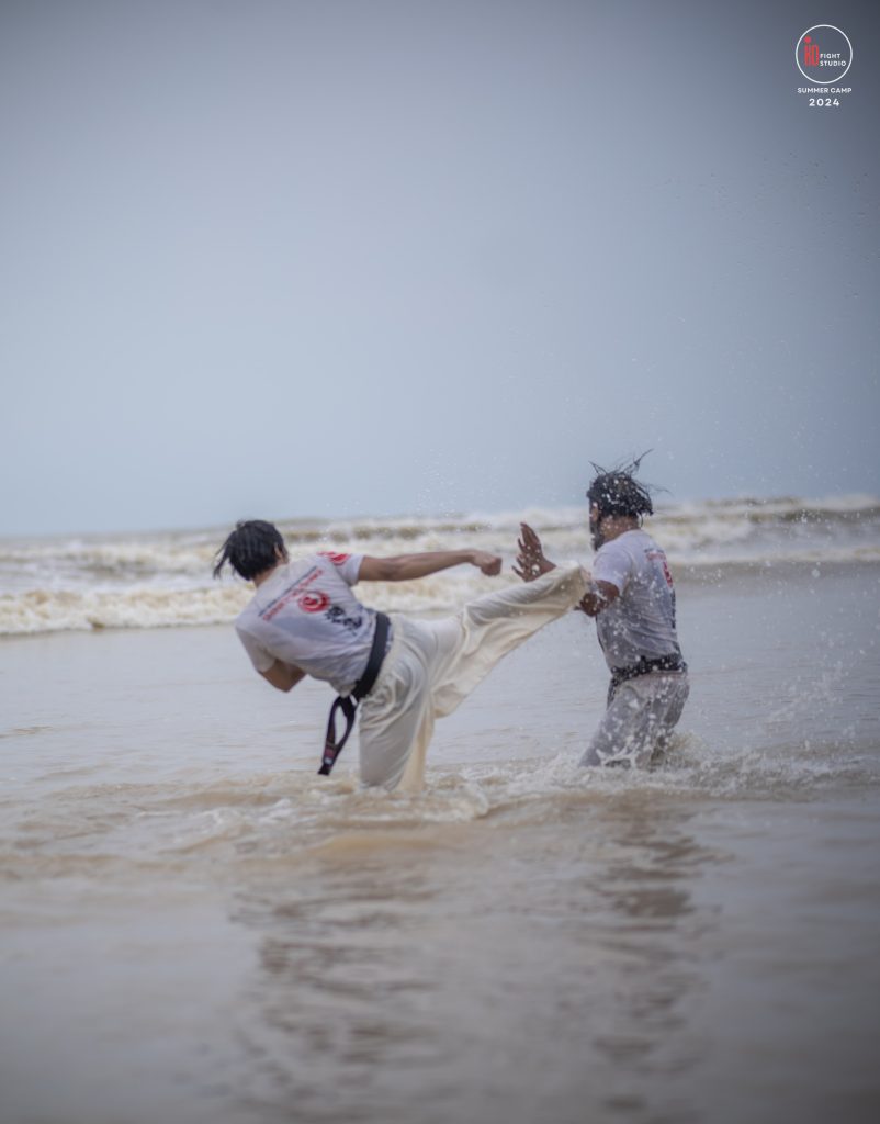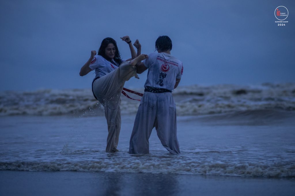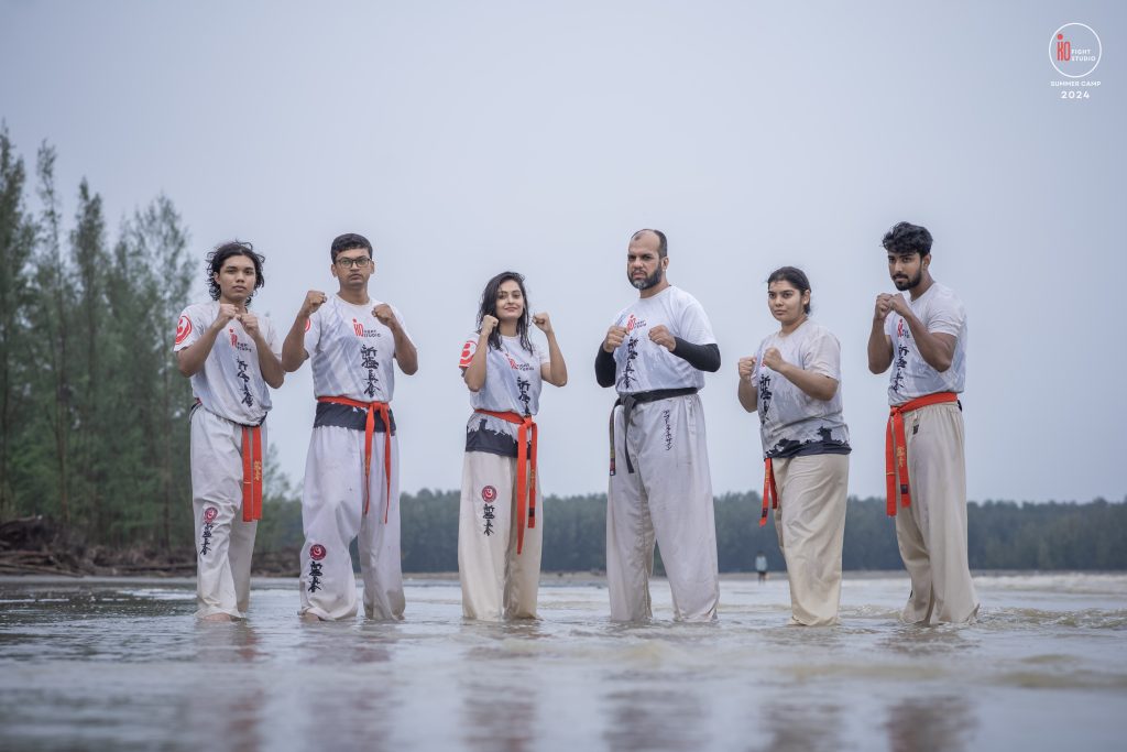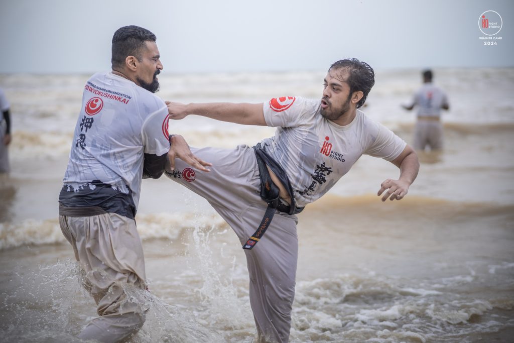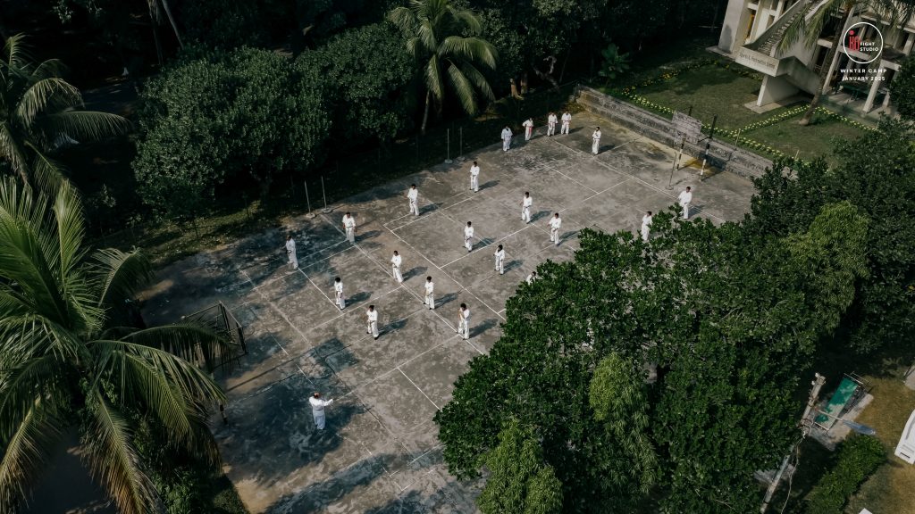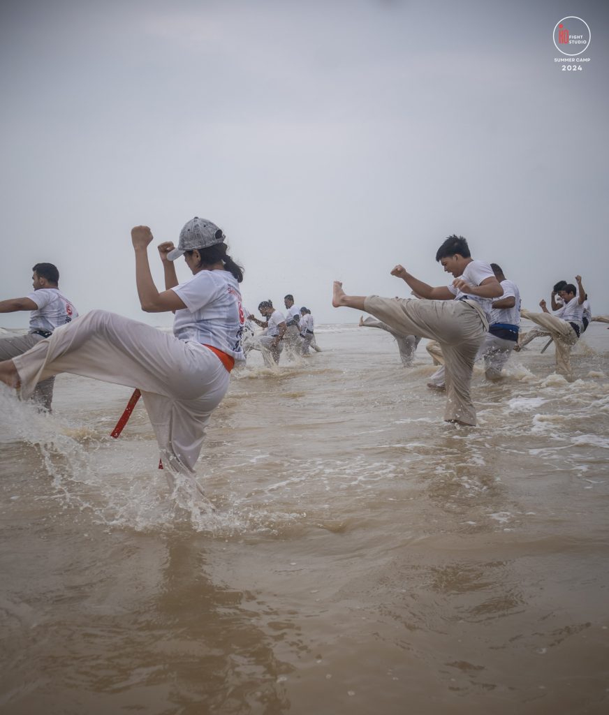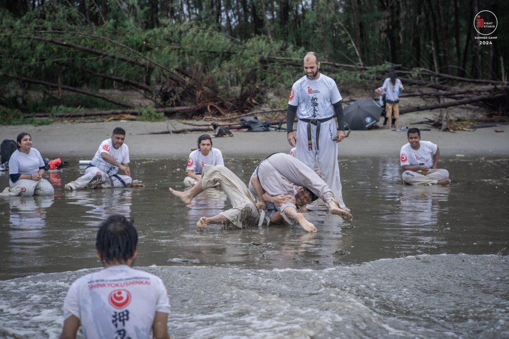 The camp’s training curriculum was structured to meet international standards, focusing on the core disciplines of Kyokushin: Kihon (basics), Eido (movement), Kata (forms), and Kumite (sparring). Each day began with dawn Zen meditation, followed by a 5 km run and high-intensity beach training. Morning kata sessions took place from 10:00 a.m. to 12:00 p.m., followed by afternoon beach conditioning starting at 3:00 p.m., after a 2 km walk, and ending at sunset with powerful group sessions.