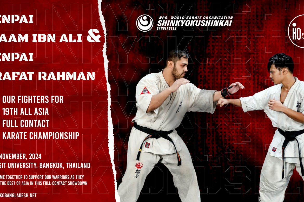 We are immensely proud to have Senpai Siaam Ibn Ali (2nd Dan) and Senpai Arafat Rahman (1st Dan) representing Bangladesh on this grand stage! Under the leadership of Shihan Abdullah Mohammad Hossain, our team is ready to demonstrate the power, spirit, and dedication of Shinkyokushin Karate in the heart of Asia. 🇧🇩👊