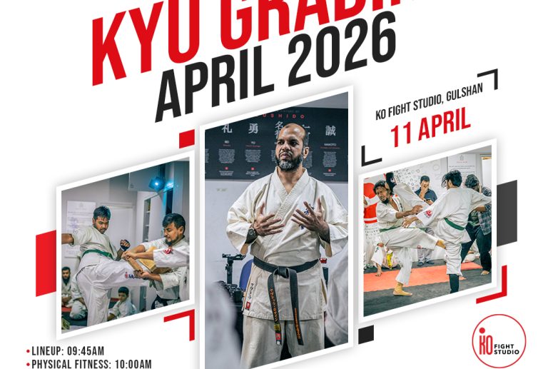 We are excited to announce the Kyu Grading (White to Green Belt), scheduled for Saturday, 11th April 2026, at our Honbu, KO Fight Studio in Gulshan.