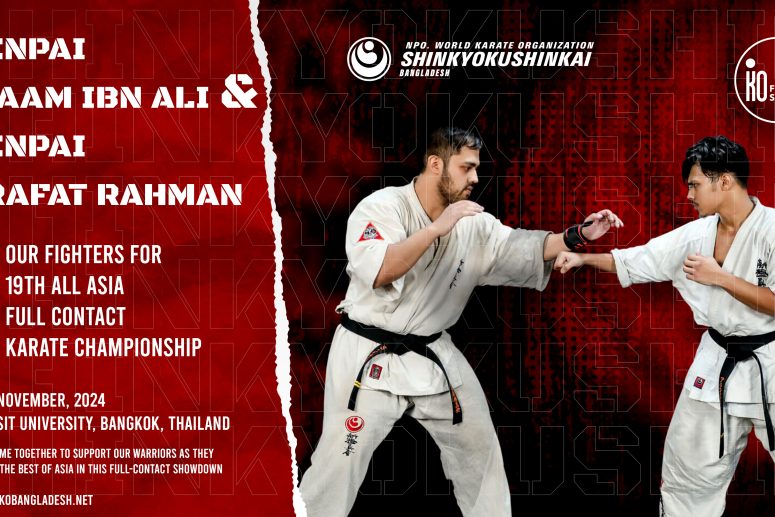 We are immensely proud to have Senpai Siaam Ibn Ali (2nd Dan) and Senpai Arafat Rahman (1st Dan) representing Bangladesh on this grand stage! Under the leadership of Shihan Abdullah Mohammad Hossain, our team is ready to demonstrate the power, spirit, and dedication of Shinkyokushin Karate in the heart of Asia. π§π©π